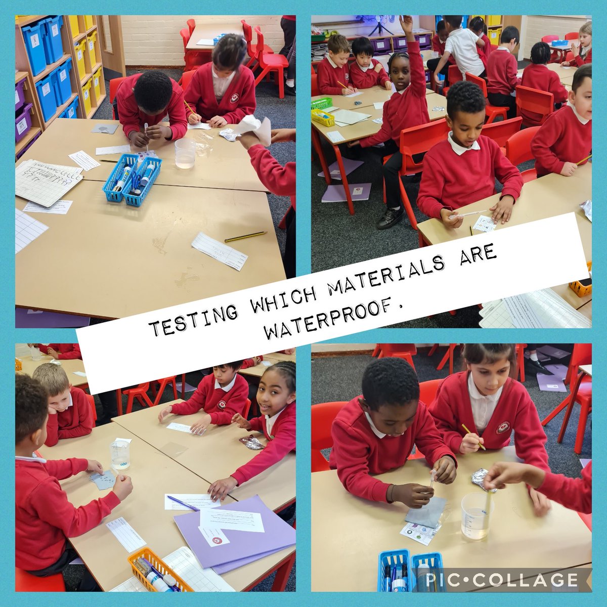 Look at Year 1/2, so focused on testing different materials to find out if they are waterproof or absorbent. #ScienceAtStA’s