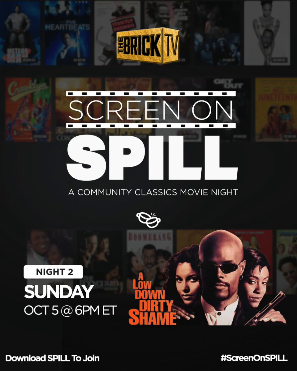 Let us enlighten you about a few things ✨ Night 2 of #ScreenOnSPILL is coming with the 1994 classic A Low Down Dirty Shame 🍿 Sunday, Oct 5 @ 6p ET 📍 Streaming LIVE on SPILL Join the party: spill.com/download