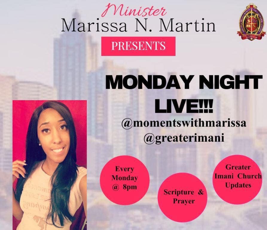 Monday Night Live! #TuneIn #ScriptureAndPrayer #UpdatesAndEvents #Like #Share #Follow #BeBlessed facebook.com/greaterimani/vโฆ
