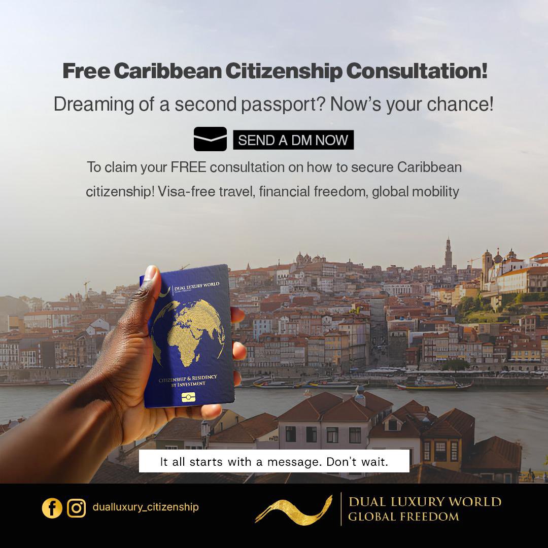 🌍 Information is Power — Access is Everything! 💡 That’s why we’re offering FREE Caribbean Citizenship Consultations — no strings attached! 📲 DM us today to book your free session! #DualLuxuryWorld #CaribbeanCitizenship #SecondPassport #GlobalMobility #CitizenshipByInvestment