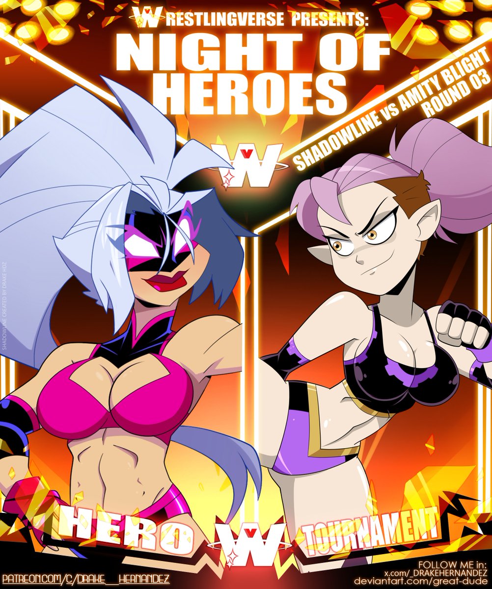 The Masked Beauty #Shadowline vs The Champion of the Boiling Isles #AmityBlight - The #Wrestling Match for the Bronze of the Night of Heroes tournament is HERE 🏆⚔️ 🔥✨Artwork Now Available