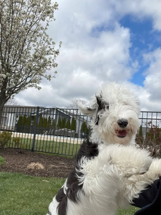 It's just a breezy spring day with Kaylee the Sheepadoodle! 🐩🐾❤️ She’s serving up smiles, fluffy fur, and boundless energy! Who else loves soaking up the fresh air and blue skies like this happy pup? #Sheepadoodle #SpringVibes #PuppyPlaytime #FluffAndJoy