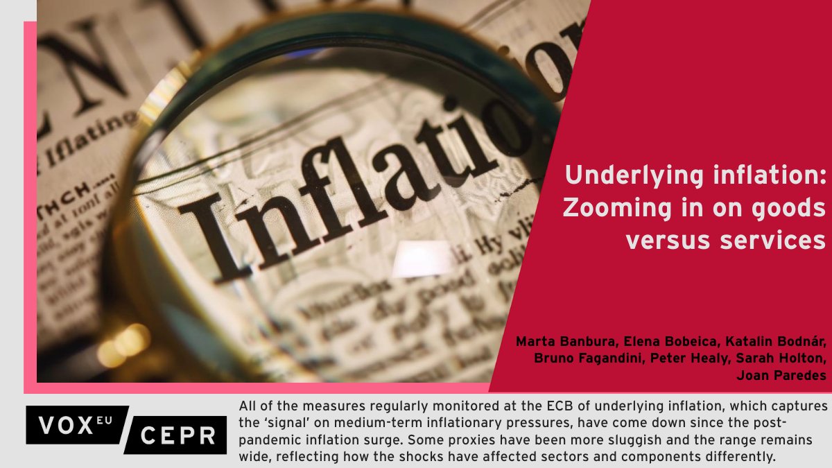 The pace of #disinflation in indicators linked to more domestically driven prices is slower, reflecting the delayed transmission of the recent extraordinary inflationary #shocks and the staggered adjustment of wages. M Bańbura, E Bobeica et al. @ecb ow.ly/5T3N50TFlPI