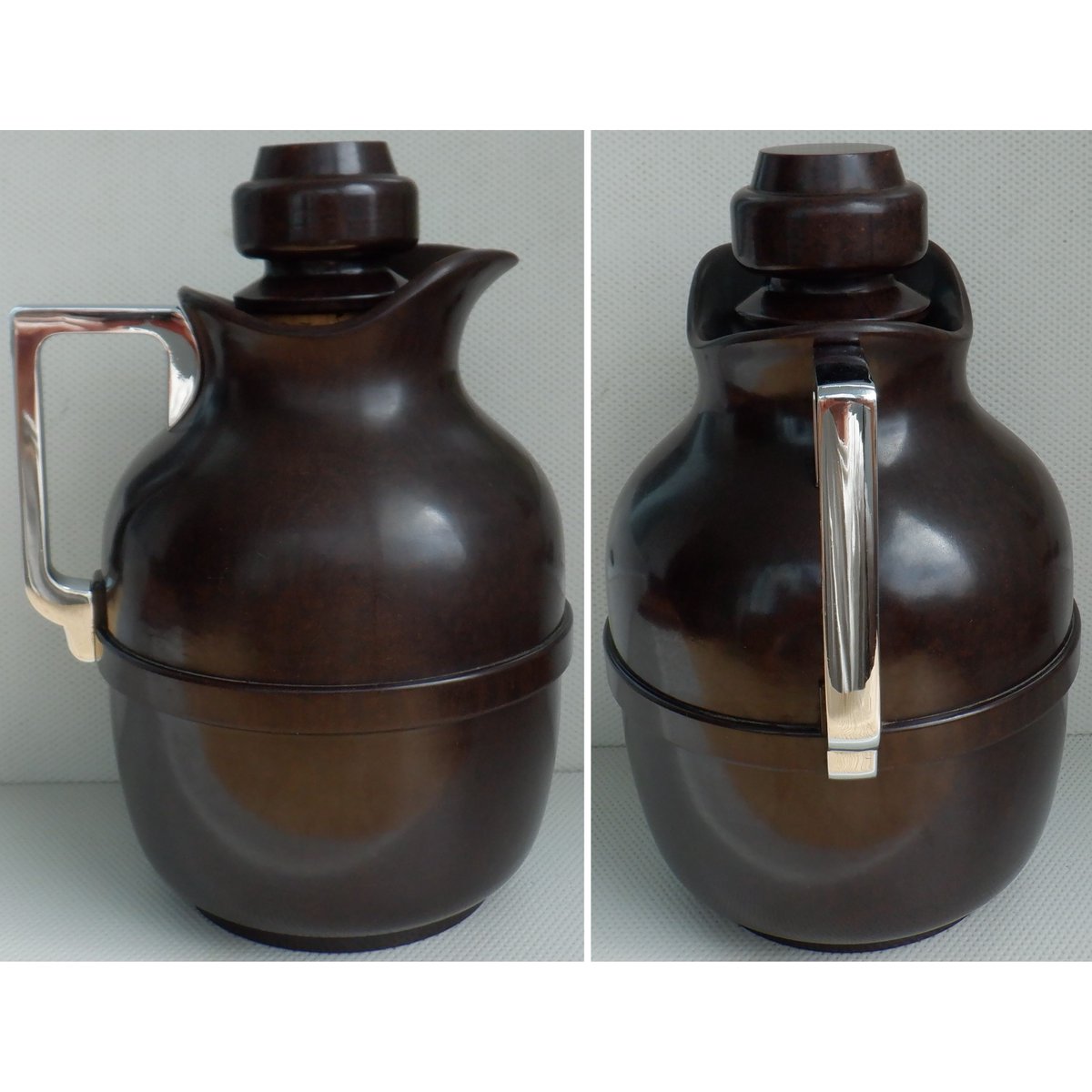 Here's a vintage Thermos 1 pint flask. Made in England from Roanoid - a Bakelite style material. With a chrome handle. 21.5 cm in height. 🛒 ebay.co.uk/itm/1677931871… #Vintage #ShopVintage #Thermos