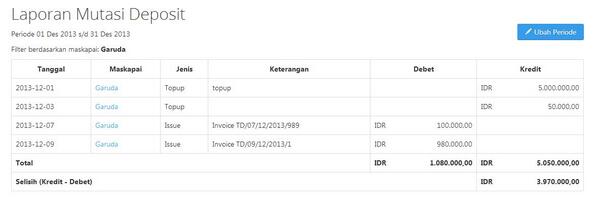 Laporan Mutasi Deposit per maskapai merupakan fitur Dashboard Simful Travel #simful #travel #startup #indonesia #tips