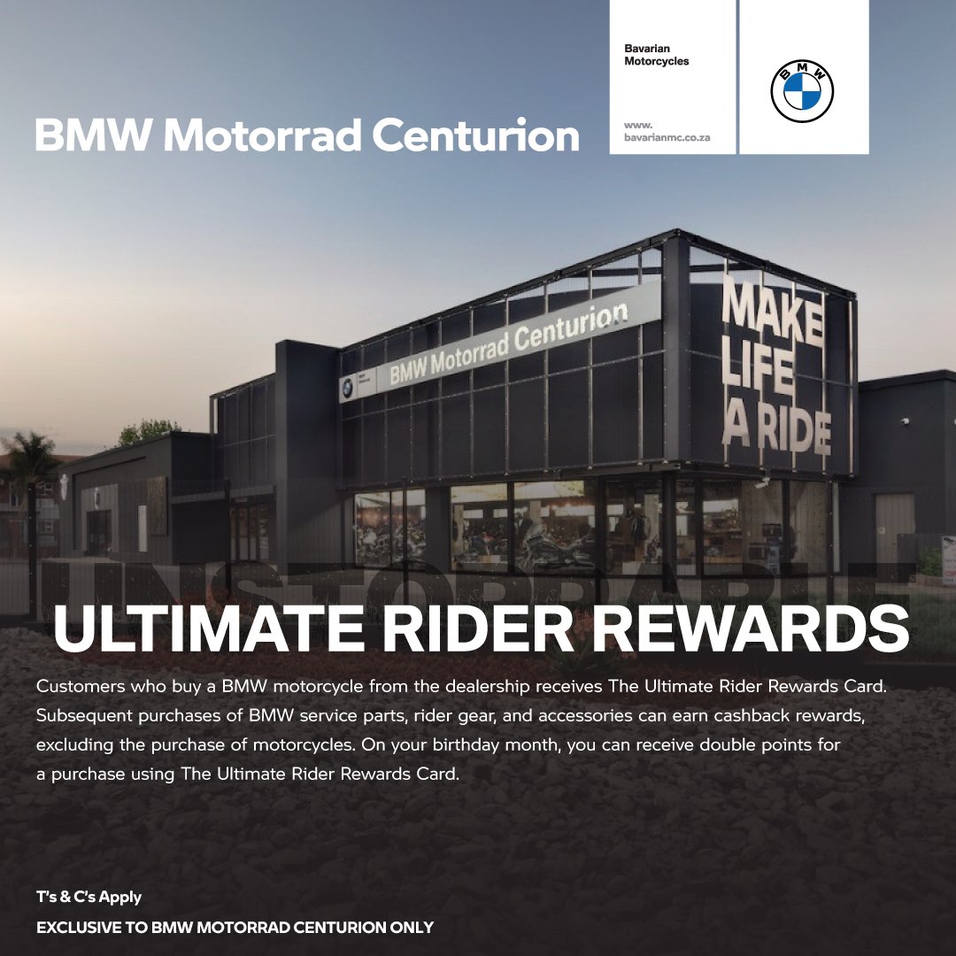 For more info on the Ultimate Rewards program, contact us on 012 643 1680 /[email protected] #Since1992 #UltimateRiderRewards #BMWMotorradCenturion #BavarianMotorcyclesCenturion