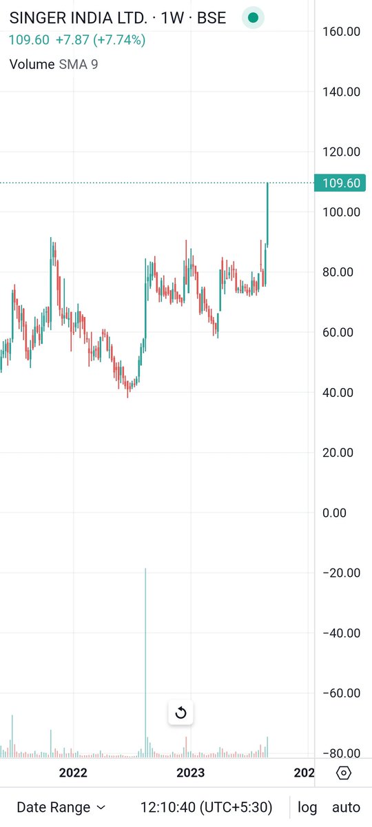 Second stock @100 % that too after a gap of 4 years , Closing at ATH territory with huge volume #SingerIndia #Singer