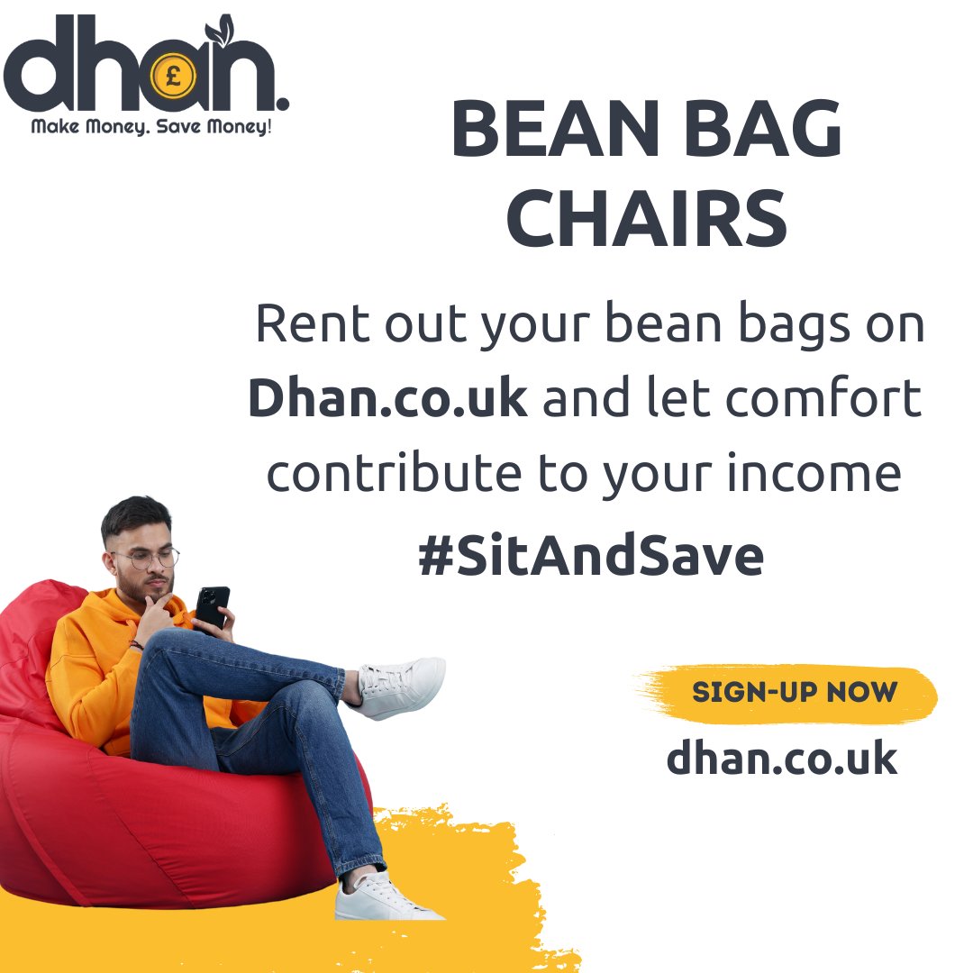 🛋️ Bean Bag Chairs 🛋️ Turn your comfort into cash! 💷 Rent out your bean bags on Dhan.co.uk 🔒 Secure and easy process 🌍 Join the sharing economy 💺 Perfect for lounging lovers 👉 List them on dhan.co.uk today. #SitAndSave #BeanBagRentals