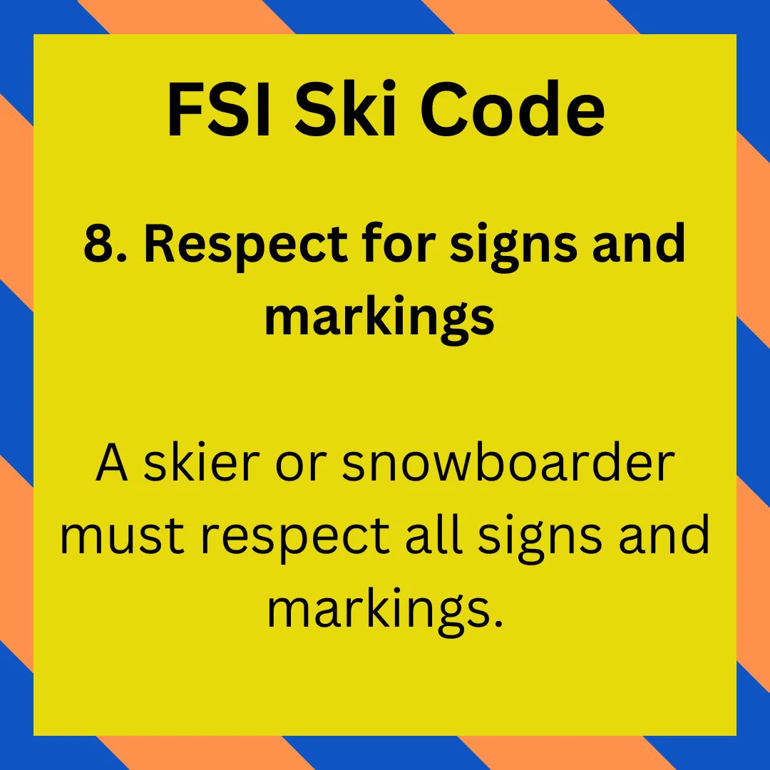 The slopes are marked with signs showing direction or warning of danger or closure. These signs must be strictly observed. Stay safe out there on the slopes. You can see the rest of the @FIS_SkiCode here buff.ly/3l8jgPF #SkiSafe #SkiEasy #SkiHoliday