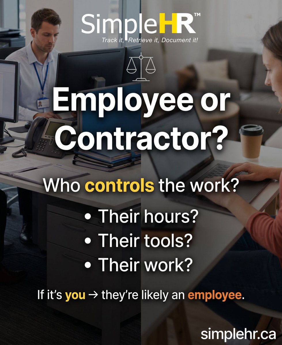 It’s not just a title - it’s about control. Misclassification can cost you. Simplify compliance and keep your HR on track with SimpleHR - track it, retrieve it, document it all in one place. Visit simplehr.ca #HRCompliance #SmallBusinessCanada #HRSoftware #Payroll