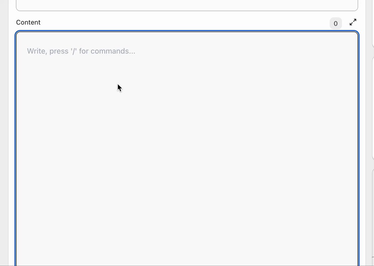 【Shopifyブログアプリ - SmartBlogアップデート】 スラッシュ(/)のみブロック入力だったのが、WordPressのような選択式に変更! わざわざスラッシュを入力しなくても、洗練されたデザインを直感的に挿入可能になりました✨ #shopifyapp #smartblog --- SmartBlog とは ---…