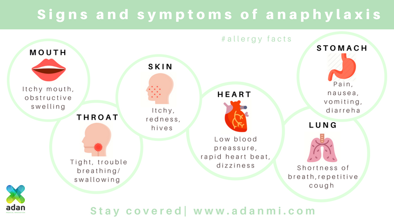 Are you aware of all the common signs and symptoms of #anaphylaxis? Check them out here! It is important to recognize them and act as soon as possible. Stay always covered with our #SmartCase for #epinephrine autoinjectors! ow.ly/MSIX30kYcpl
