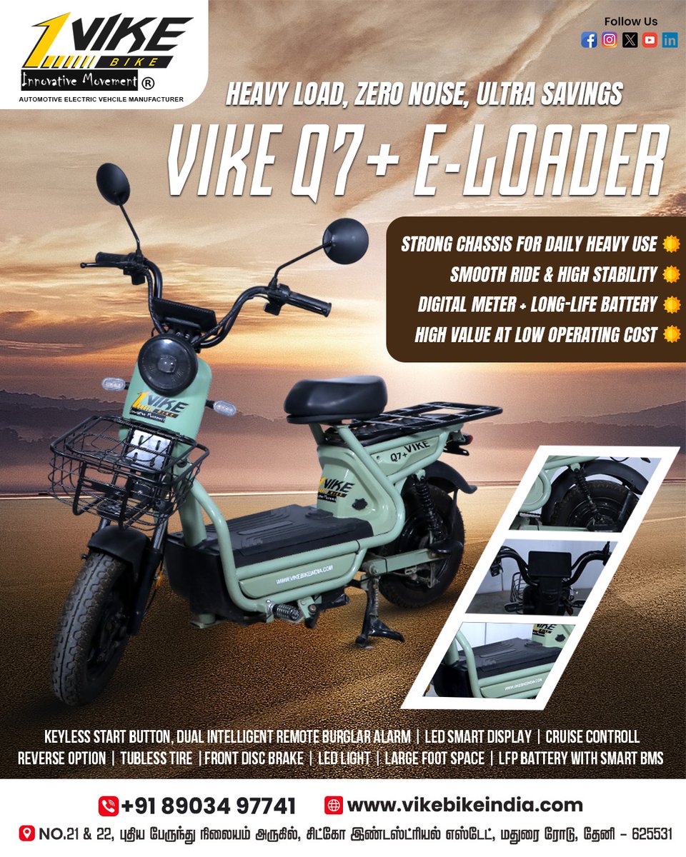 Heavy Load, Zero Noise, Ultra Savings Vike Q7 + E - Loader - Theni #SmartFunctionButtons #PhoneChargingPort #ElectronicRemoteKey #AdvancedThrottle #AntiTheftAlarm #HeavyDutyPerformance #RideSmartRideSafe #xman #xmanbike #Queens #HeavyLoad #ZeroNoise #UltraSavings #VikeQ7 #Loader