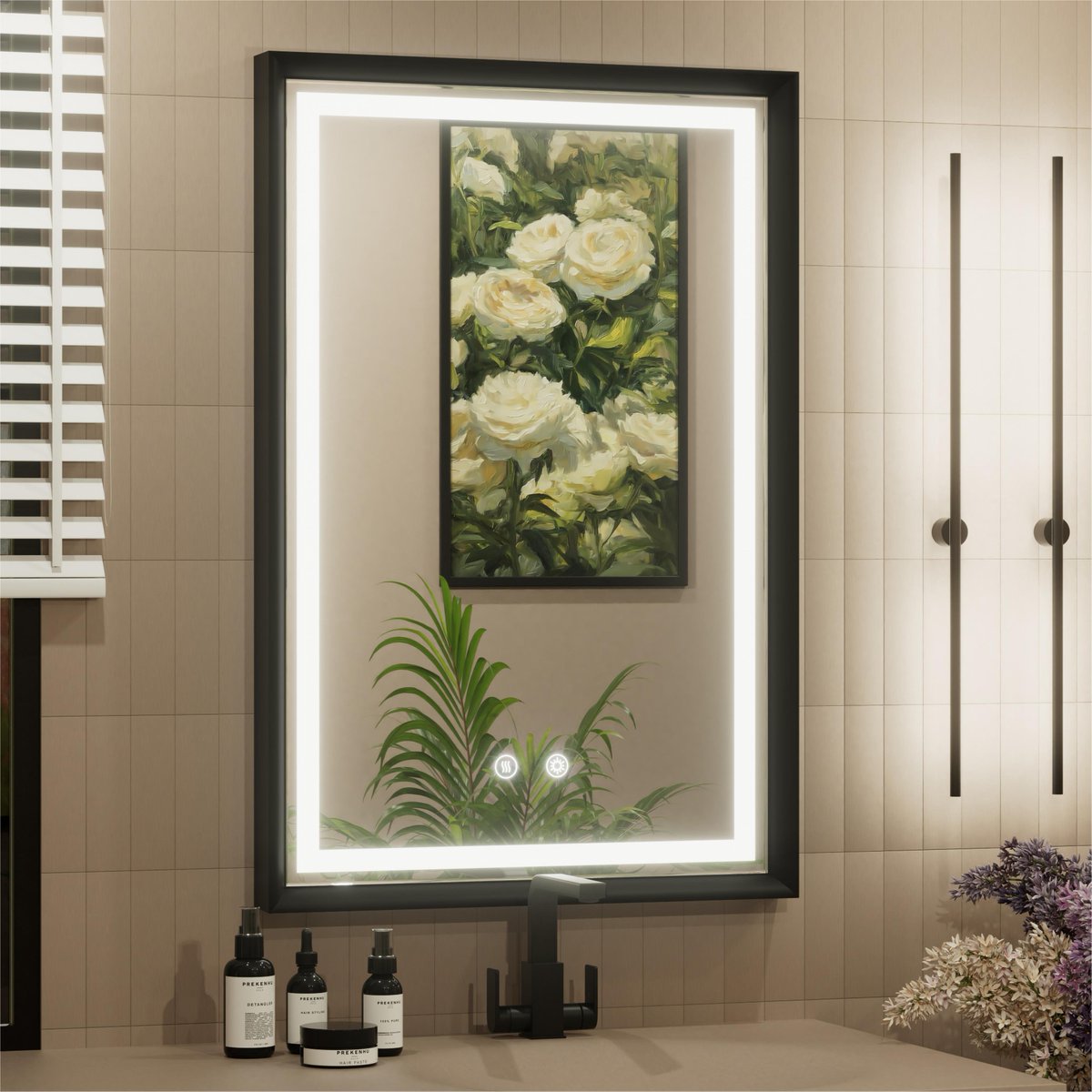 Perfect for makeup & shaving🧴 24x36’’ LED bathroom mirror with solid black frame. 5mm scratch-resistant HD glass, soft front lights. 3 CCT settings, stepless dimming tech. Built-in memory and defogging function for comfort. amazon.com/dp/B0DMSQ2ZNM #BathroomGoals #SmartHome