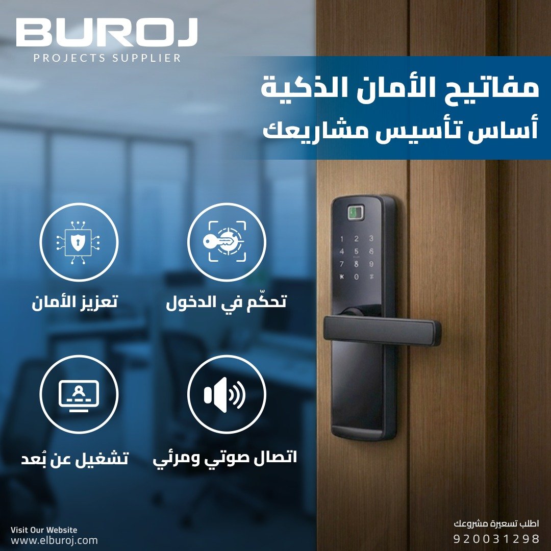 مشروعاتك لا تكتمل بدون أمان ذكي 🔐 في Buroj نوفر حلول المفاتيح الذكية وأنظمة الدخول المتقدمة لتعزيز الأمان وسهولة التحكم تحكم كامل | اتصال صوتي ومرئي | تشغيل عن بعد ارفع جودة مشاريعك بتقنيات موثوقة. 920031298 | 0594709297 elburoj.com #SmartLocks #أنظمة_أمان #Buroj