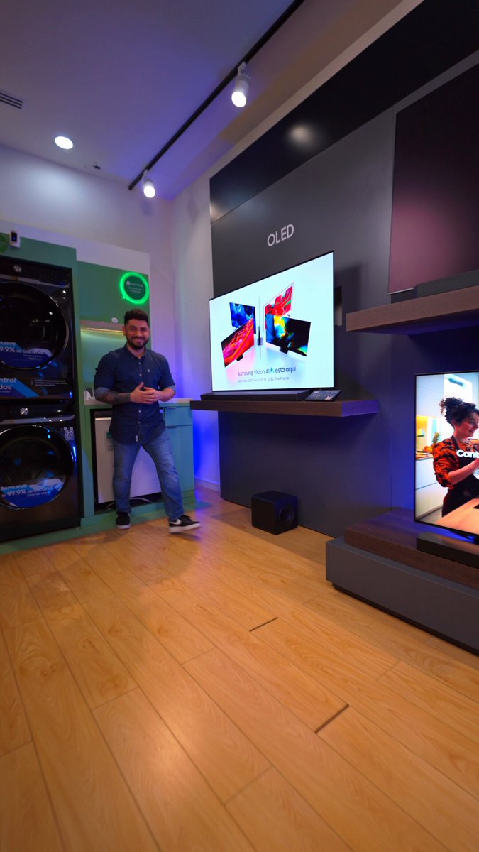 Tu sala no es solo entretenimiento, es el centro de tu hogar✨ Con Samsung #OLED y #SmartThings, controla todo desde la pantalla: baja las persianas, enciende las luces o pon a secar la ropa, sin levantarte del sofá. 👉 Más que una TV, es el cerebro de tu casa inteligente 💙