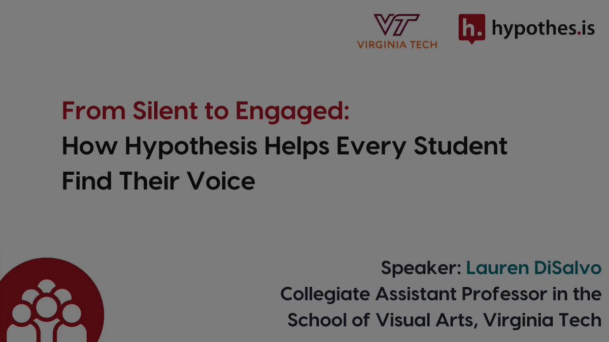Lauren DiSalvo, Collegiate Assistant Professor in the School of Visual Arts at Virginia Tech, used Hypothesis to engage even her shyest students. See how social annotation helped every voice be heard. #Hypothesis #StudentEngagement #SocialAnnotation