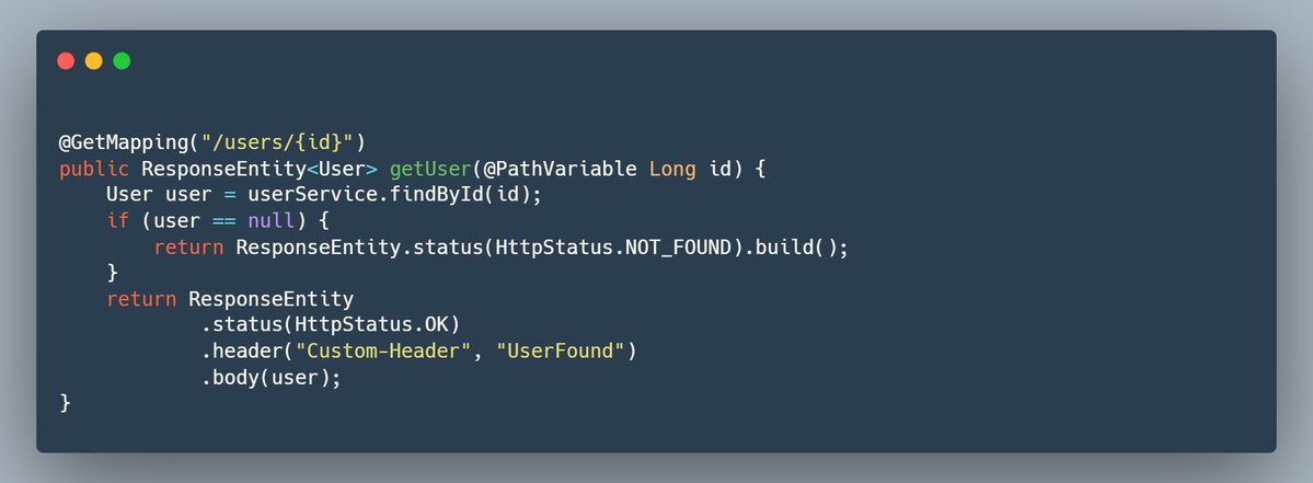 🚀 Spring Boot: Use ResponseEntity<T> to get fine-grained control over HTTP responses. You can explicitly specify Status, Headers, and Body #SpringBoot #SoftwareEngineering