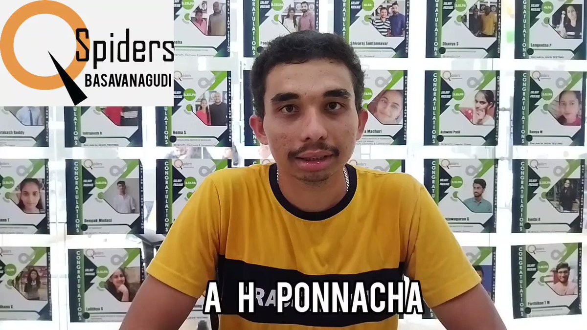 Our Student PONNACHA A H, BE(MECHANICAL), Placed as SOFTWARE QUALITY ANALYST, giving feedback about the Institution, Trainers, HRs and his Experience in QSpiders Basavanagudi. #qspidersbasavanagudi #mechanicalengineering #softwarequalityanalyst #qspidersjspiders #placements2022