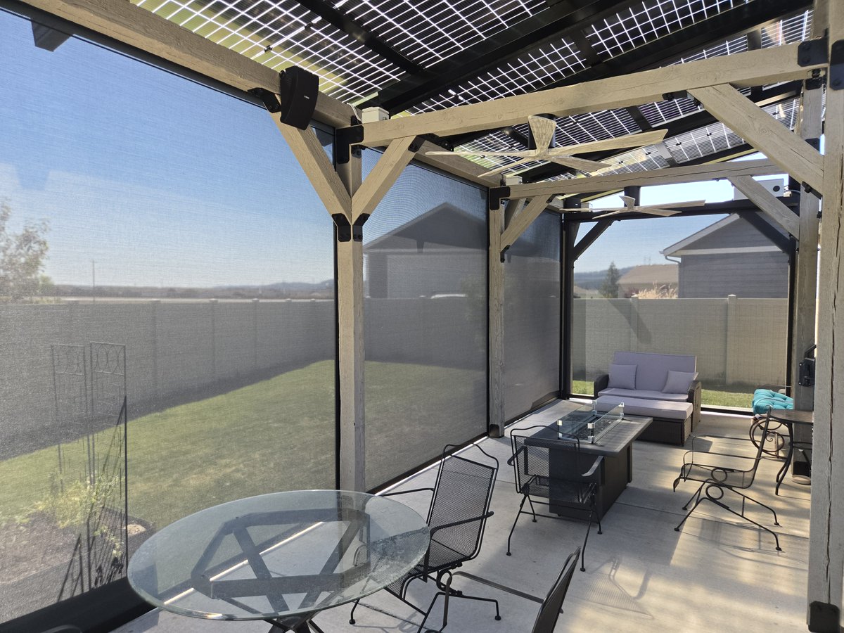 DIY—elevated. 🔥 This Idaho customer built their own solar patio with Infinity Rack’s roof-only kit—complete with drop-down shades & ceiling fans. Solar + style + shade = ☀️🏡💨 #SolarDIY #InfinityRack #BackyardUpgrade #CleanEnergy