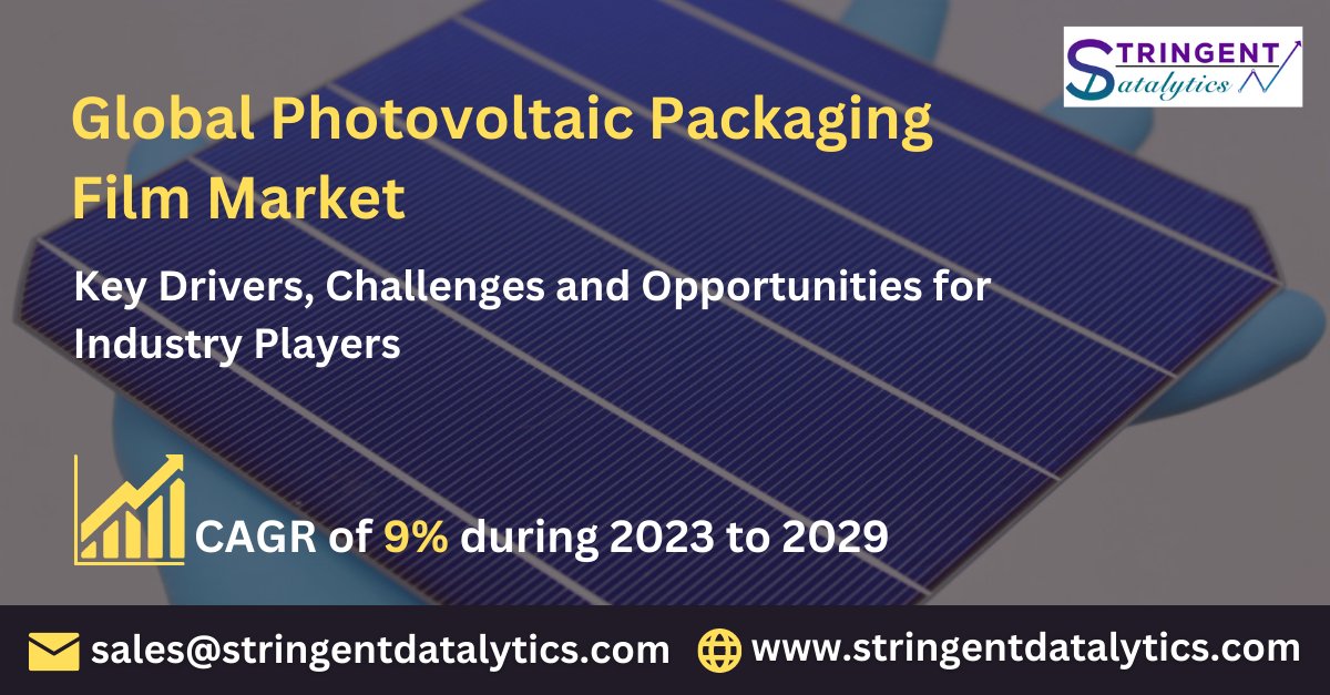 Photovoltaic Packaging Film Market is projected to grow at a CAGR of 9% during 2023 to 2029 ๐๐๐ญ ๐ ๐ซ๐๐ ๐๐๐ฆ๐ฉ๐ฅ๐ ๐๐จ๐ฉ๐ฒ ๐๐จ๐ฐ: rb.gy/ixmx1 ๐ @StringentDataL #solarfilm #solarpackaging #pvfilm #solarenergy #solarpower #photovoltaic #solarindustry #share