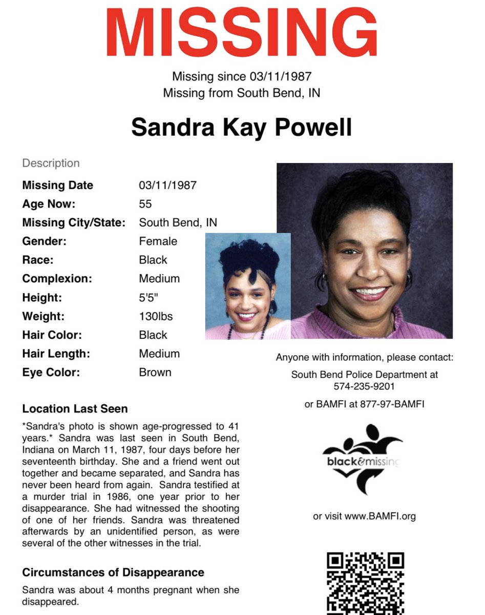 #SouthBend, #IN: Today marks 39 years since then 16y/o Sandra was last seen on Mar 11, 1987, 4 days before her 17th birthday. She & a friend went out together & became separated. Sandra testified at a murder trial in 1986 & had witnessed the shooting of one of her friends.