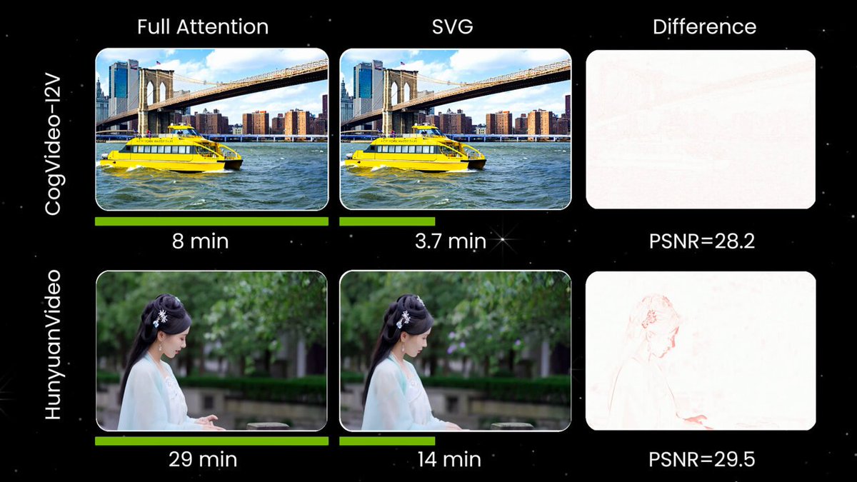 🚀 Introducing #SparseVideoGen: 2x speedup in video generation with HunyuanVideo with high pixel-level fidelity (PSNR = 29)! No training is required, no perceptible difference to the human eye! Blog: svg-project.github.io Paper: arxiv.org/abs/2502.01776 Code:…