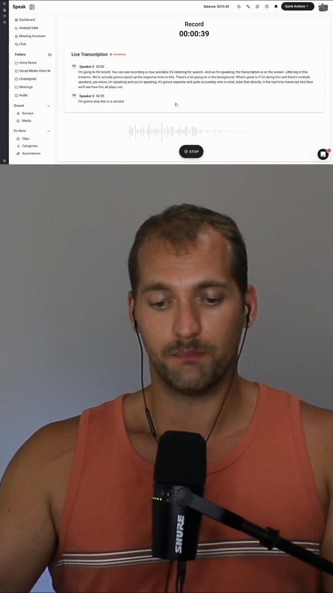 Live transcription to familiar Speak AI analysis in seconds! #livetranscription #transcription #speechtotext #realtimetranscript
