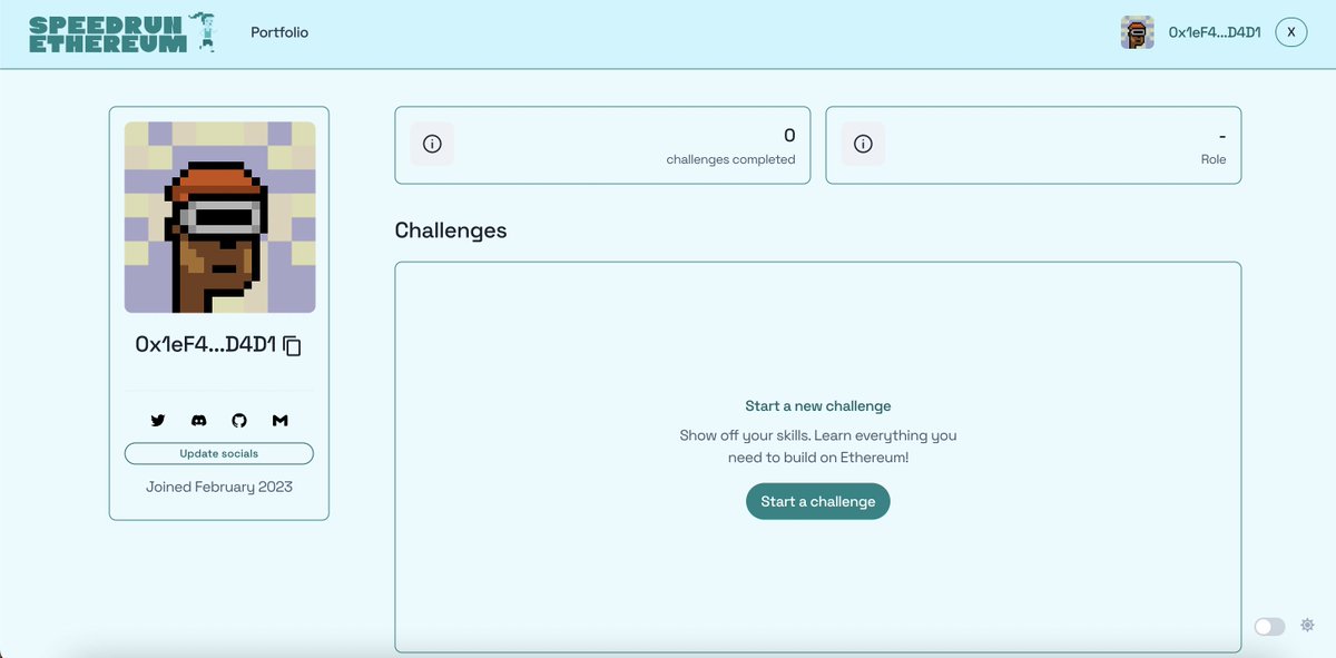 I just started the #SpeedRunEthereum to expand my web3 portfolio 👨💻. Will share my experience and portfolio dApps which I will build. @austingriffith #portfolio #Web3 #blockchain #Solidity