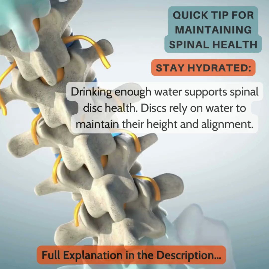 Stay Hydrated: Drinking enough water supports spinal disc health. Discs rely on water to maintain their height and alignment. Follow me @drrondaultonjr for more helpful tips regarding spinal health, general health, and natural healthcare. #stayhydrated #spinaldischealth