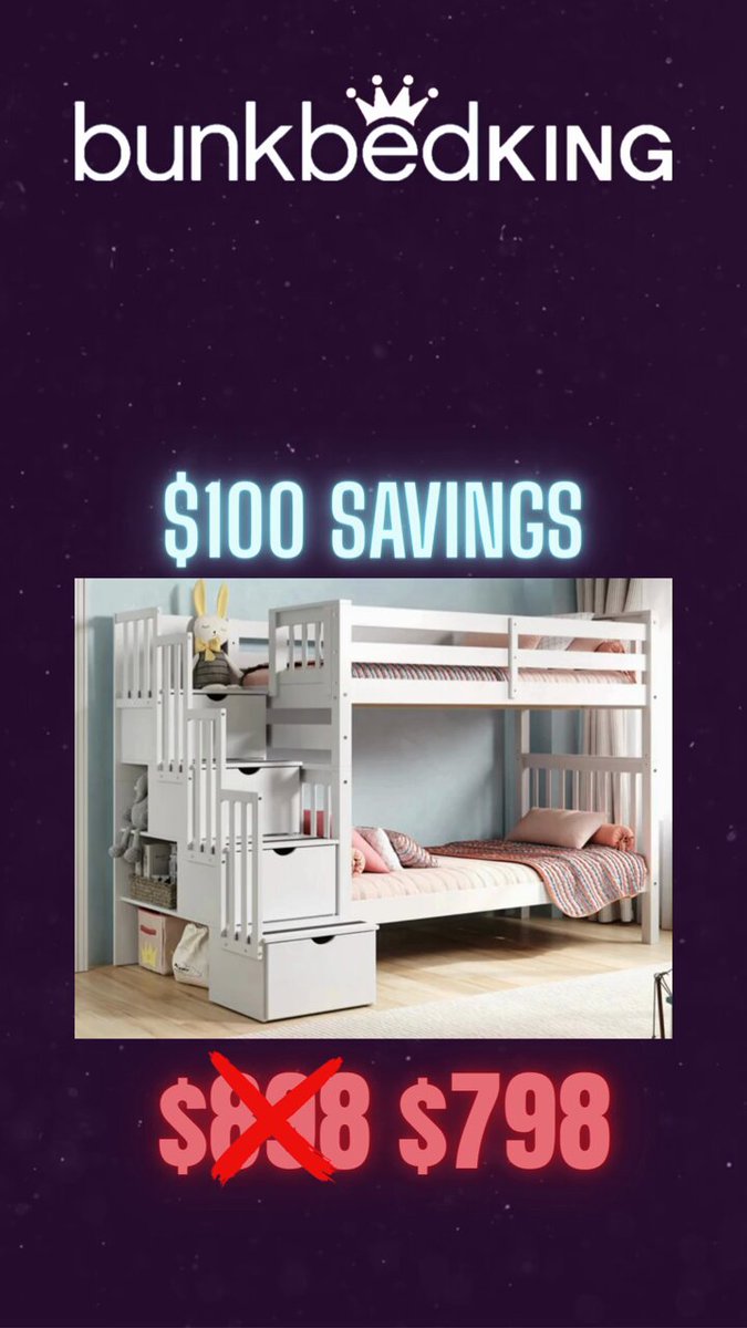 ✨Don’t sleep on this Deal! 💲 Save $100—now just $798 + FREE SHIPPING! 🛏️ Tall Twin/Twin Stairway Bunk in White! 👑 Shop now 👉 bunkbedking.com/products/bunk-… #BunkBeds #HalloweenSale #SpookySavings
