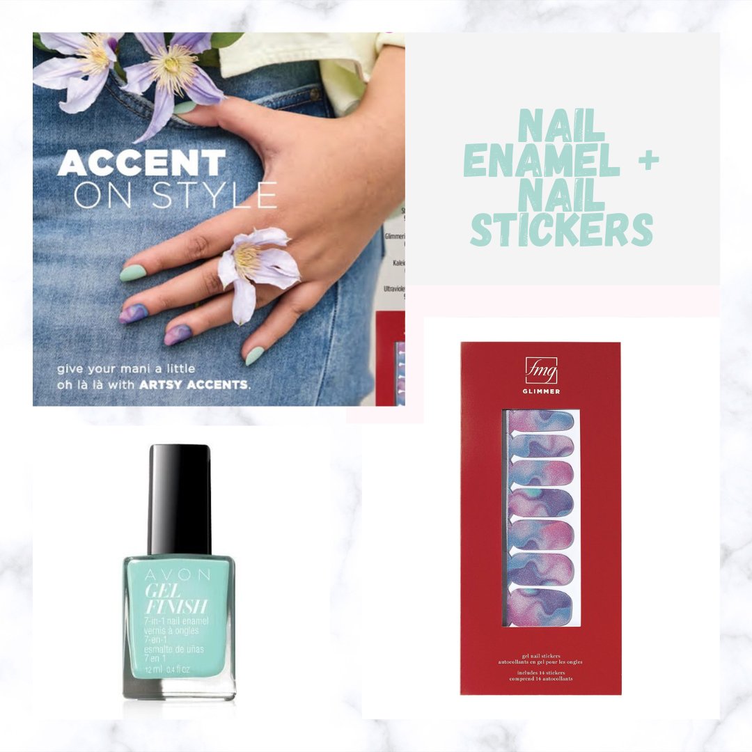 Artsy accents for your Spring mani? YES!!! bit.ly/3IwkYBY 💅 Avon Gel Finish 7-in-1 Nail Enamel in shade Mint To Be. 💅 Avon fmg Glimmer Gel Nail Stickers in Ultraviolet Waves. #springmani #springbeauty #springnails