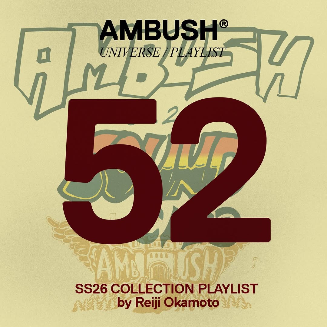 PLAYLIST 52 - A playlist curiated by @OKAMOTOREIJI for our #SpringSummer2026 Collection. Now up on our official AMBUSH®︎ Spotify page. 📡 AMBUSH_OFFICIAL 📶 bit.ly/49S8bZf
