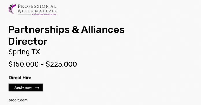New role! Partnerships & Alliances Director, $150,000 - $225,000 - #SpringTX. paiger.link/1719166014