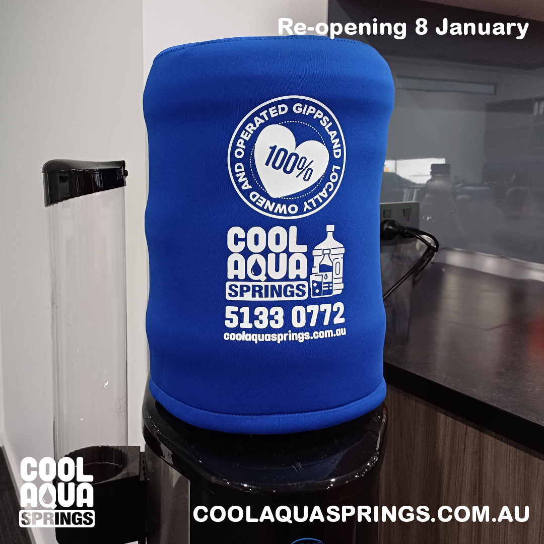 Our newly branded neoprene water cooler bottle covers have arrived and look great. They come with a pull string to ensure a snug fit and shield your bottle from direct sunlight and UV rays. coolaquasprings.com.au #BottleCover #SpringWaterDelivery #CoolAquaSprings