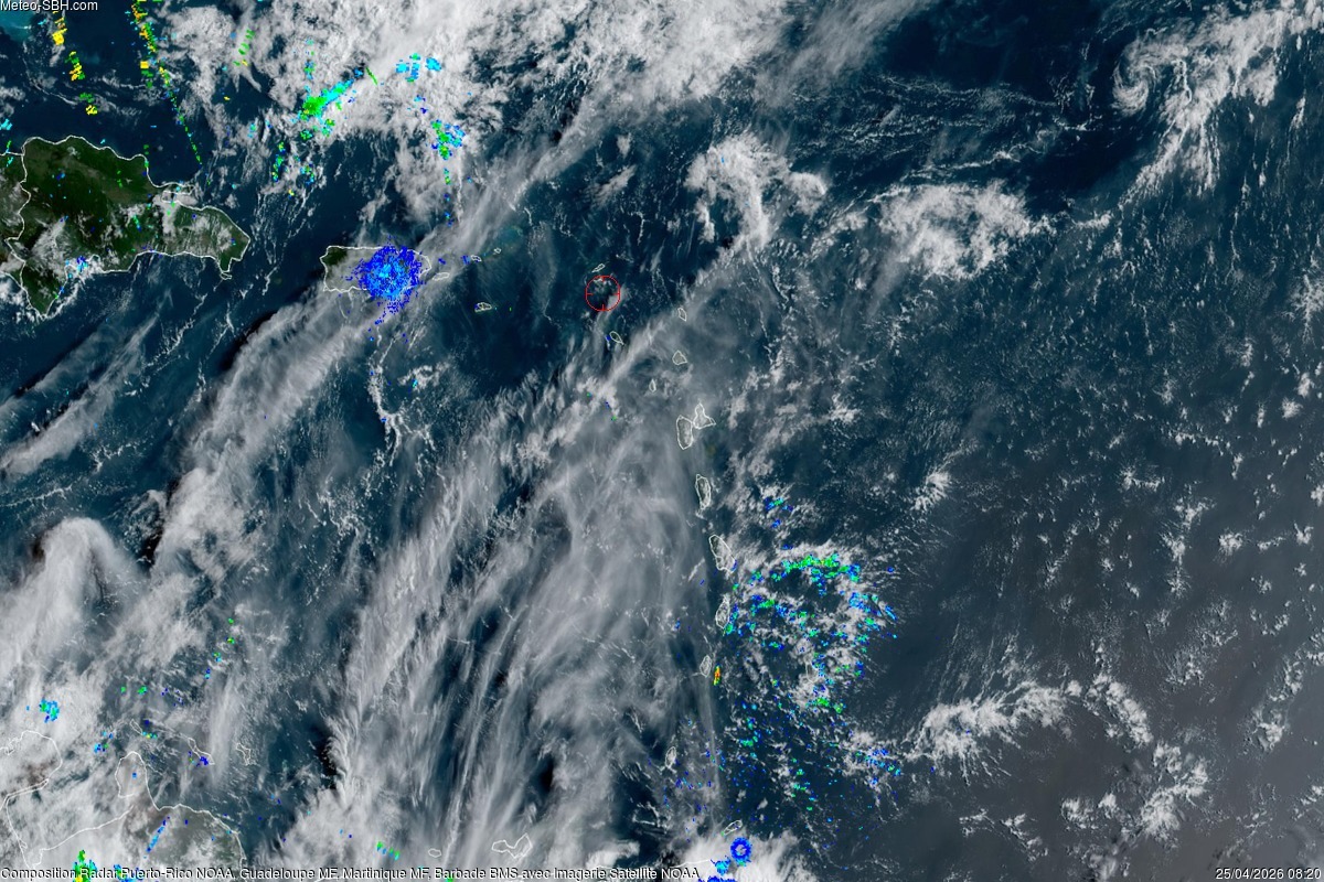 ⛈️La forte instabilité pluvio-orageuse produite par une faible zone dépressionnaire située au Nord des Grandes-Antilles et rattachée à un pseudo front froid s'éloigne dorénavant de #StBarth & #StMartin, actuellement en vigilance ORANGE pour fortes pluies et orages. Toutefois, une