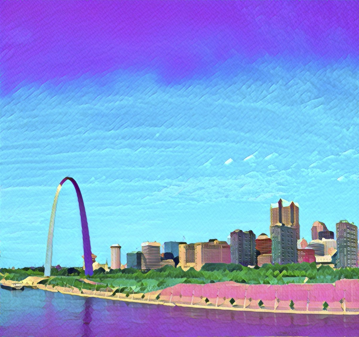 St Louis View Prisma Remix #StLouisView #StLouis #View #MissouriSide #ViewFromABridge #ColdDay #Outside #WalkAbout #Photography #Colorful #Prisma #PrismaEdit #PrismaRemix #PrismaAI #AI