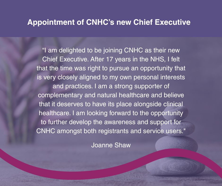 Following the recently announced retirement of Margaret Coats, CNHC is delighted to announce the appointment of a new Chief Executive, Joanne Shaw, from early 2026: ow.ly/ewFh50XrhVu #cnhc #AccreditedRegister #StandUpforStandards #complementarytherapy