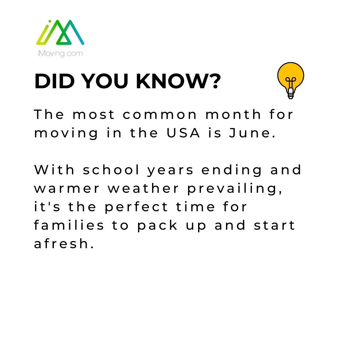 Did you know? June is the prime time for moving in the USA! 📦 With school years winding down and sunny skies ahead, families across the nation are gearing up for a fresh start. #MovingSeason #JuneMoves #StartAfresh #iMovingUSA #MovingPlatform #movingservices #iMovingExperience