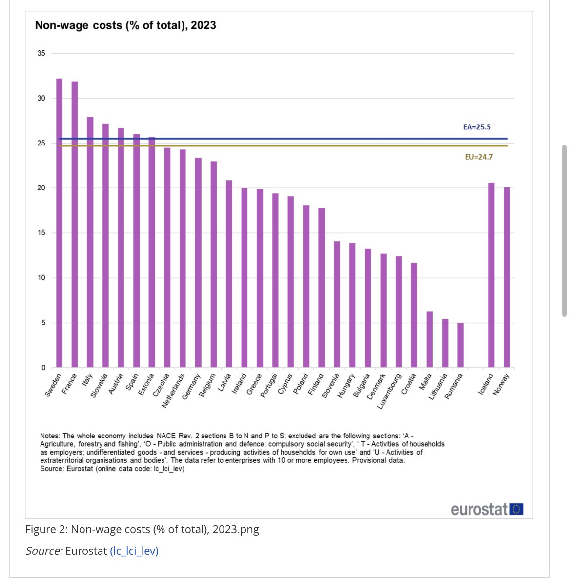 Non-wage labour costs were highest in Sweden (32.2 % of total labour costs) and France (31.9 %). ec.europa.eu/eurostat/stati… #Eurostat #StatisticsExplained