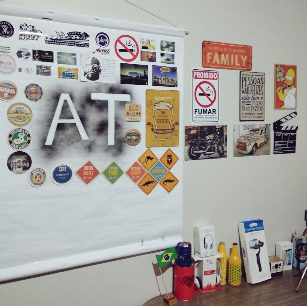 🖼️🎭Hoje foi dia de fazer o #banner de #StickerBombs, com bolachas de #chopp, que passa a fazer parte do estúdio de gravação do canal #AquarelaTubers.