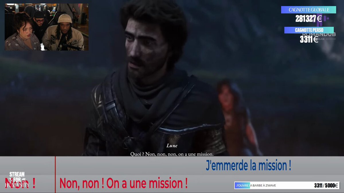 Mais le mec à gauche j’ai l’impression que c’est une déclinaison de Laink c’est fou #StreamForHumanity