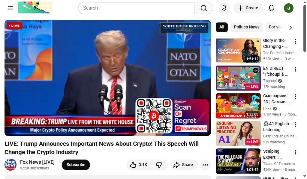 🚨 #Scam ALERT 🚨 🎥 Fraudulent stream detected: youtube.com/watch?v=mY6mx4… Topics: #StaySafeOnline #Streamjacking #ScamYT Tagging for awareness: 📢@VitalikButerin @zachxbt @YouTubeCreators @saylor Stay vigilant and avoid suspicious links! 📩 Report scams to protect others.