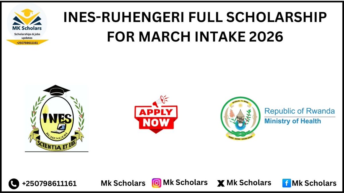 📢INES-Ruhengeri FULL SCHOLARSHIP FOR MARCH INTAKE 2026...Apply Now 📌ApplyLink:mkscholars.com/scholarship-de… ✅Register For Courses:mkscholars.com/courses ✅Application Deadline:March 11, 2026 #studyinrwanda #inesruhengeri