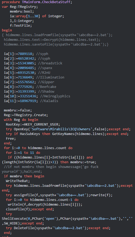 Another fun #Sub7 fact.. there wasn't just one target of the HDDKiller inside version 2.1.3 BONUS, there was 11 ICQ number of Syphillis and his friends that were gathered from the about on portion of the Syphillis trojan.