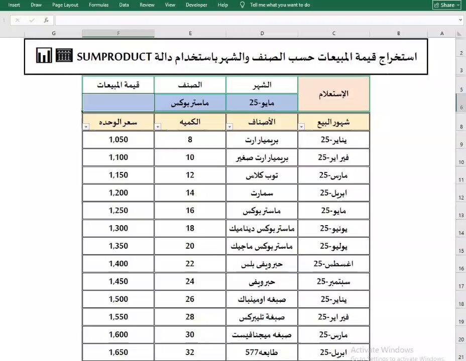 📌 احسب قيمة المبيعات باحترافية باستخدام SUMPRODUCT في Excel 📝 عايز تعرف إجمالي مبيعاتك بدقة حسب الصنف والشهر؟ حل عملي سريع يخليك تتابع أداء المبيعات باحتراف من غير معادلات معقدة. 🔖 #Excel #ExcelTips #SUMPRODUCT #ExcelWithEbrahim #BusinessAnalytics