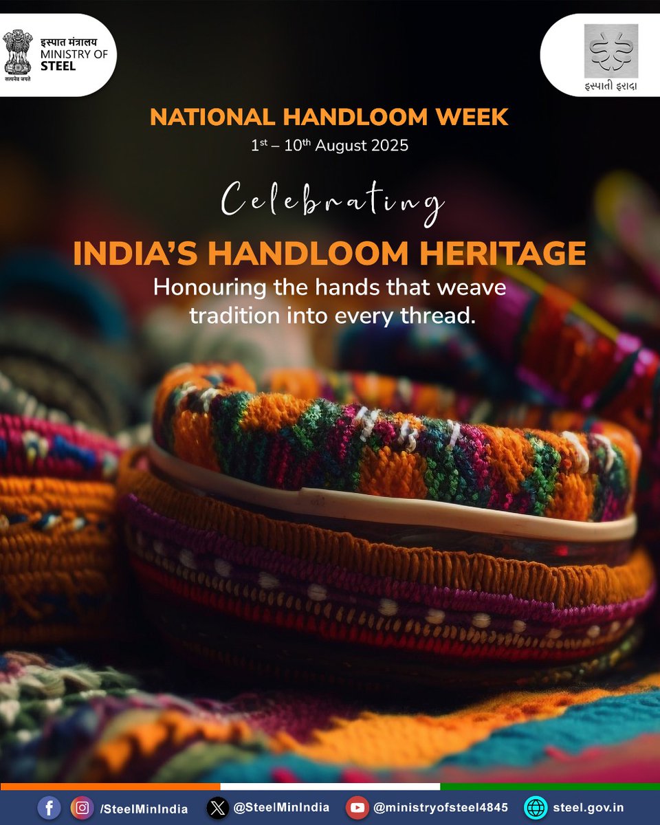 Celebrating the threads of tradition! 🧵 As National Handloom Week (1st–10th August 2025) continues, let’s stand by our weavers, promote handmade pride, and support the artisans who keep India’s heritage alive. #MyHandloomMyPride #MyProductMyPride #SupportArtisans #VocalForLocal