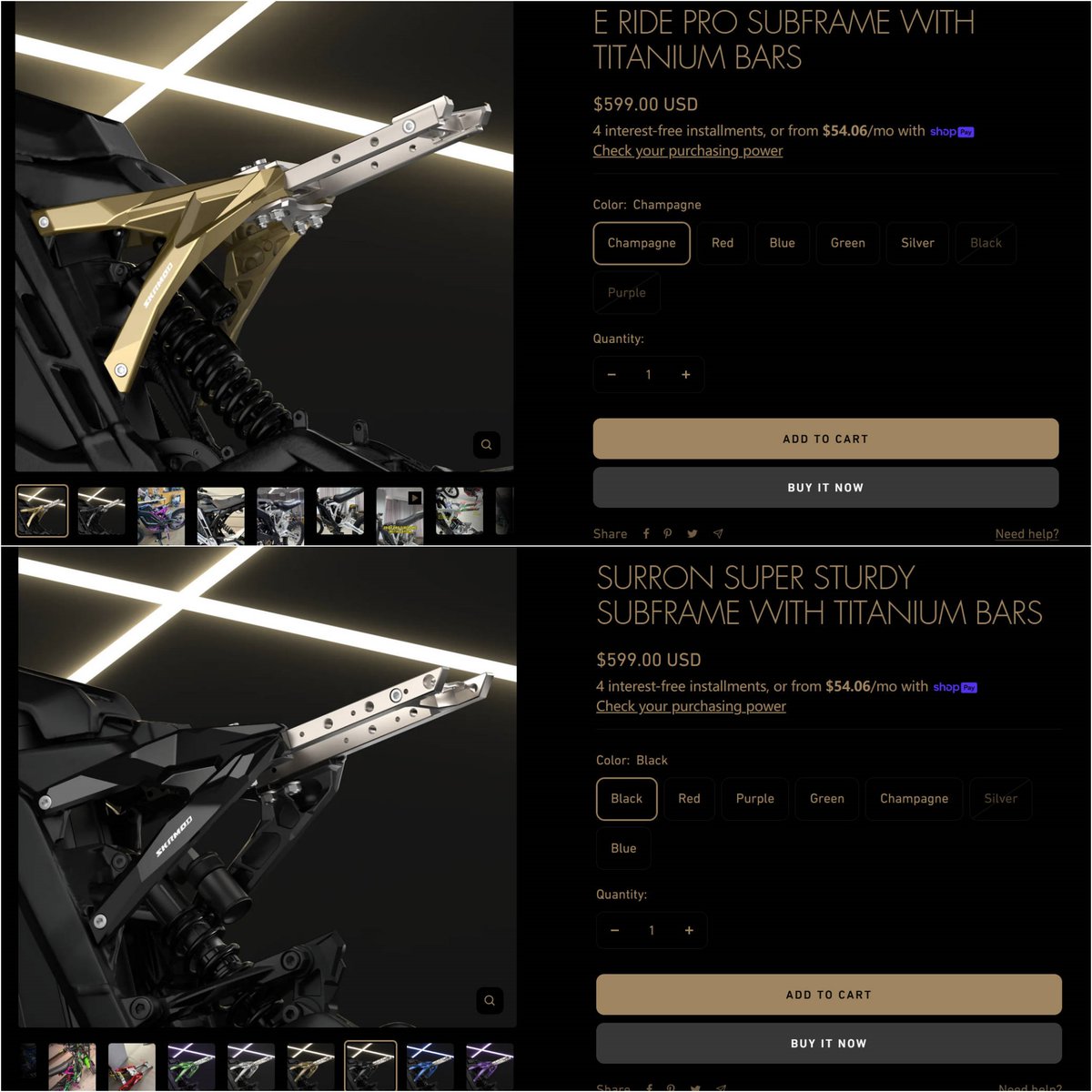 🔔[Stock Notice] A small quantity of CHAMPAGNE surron subframes are in stock! 🛒SKRMOD.COM This color is relatively difficult to oxidize, takes a long time, and the quantity of each batch is not large. #surron #surronster #surronlife #surronsubframe