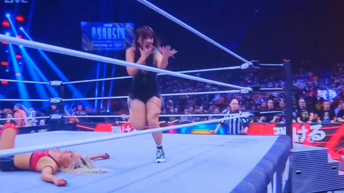 Mariah May defeats Anna Jay #AEWDymamite #TBSNetwork. After the match, Anna puts a 😴 hold on Mariah until @MinaShirakawa #Stardom comes to her aid with 🍾 & a 💋. 😆 Meanwhile a mystery attacker knocked out the CEO of AEW #MercedesMone when the lights went out in the…