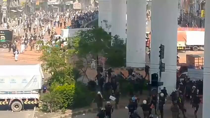 چوک یتیم خانہ، تحریک لبیک کے کارکنان پولیس اہلکار پر ڈنڈوں سے تشدد کرتے ہوئے #TLP #TLP_PROTEST #TLPMarchForPalestine